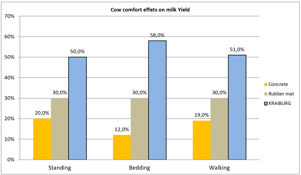 The world’s best quality 10-year guaranteed KRAIBURG cow bedding mats. Directly affects milk yield and animal comfort, while increasing the laying time of animals on soft, comfortable and functional bedding.  Animal bedding Comparison table  cow bedding characteristics comparison table:  All information is listed by DLG German Agricultural Institute.